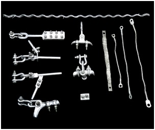 Insulator Hardware Fittings Both Tension and Suspension Type (Bolted as well as Compression Type) Conductor Accessories like Repair Sleeves, Midspan Compression Joints, Preformed Armour Rod and Vibration Damper Earthwire Accessories like Hardware fittings, Pg Clamps, Vibration Damper and Copper Earth bond. Tower Accessories Like Danger Plate, Number Plate, Phase Plate ,Circuit plate, Anticlimbing Device etc Earthing Equipment’s like Counterpoise Pipe Earthing, Earthing Strips etc.